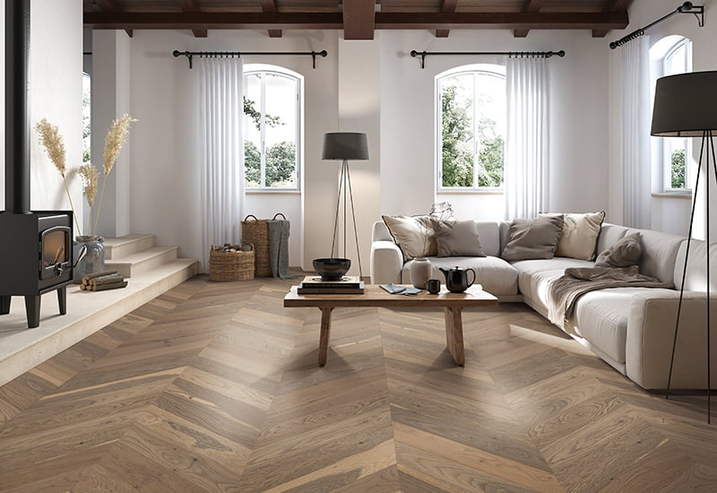 Technischer Chevron -Hartholzboden
