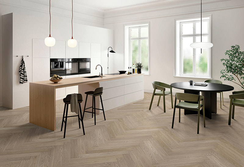 Verbessern Sie Ihren Raum mit der subtilen Eleganz unsichtbarer Lack-La-leichter, gebürstetem Fischgräten-Holzfußböden. Dieser Boden, der aus Premium White Eiche aus Osteuropa stammt, kombiniert modernes Design mit natürlicher Schönheit. Die hell gebürstete Oberfläche verbessert das natürliche Korn des Holzes und erzeugt ein weiches, strukturiertes Finish, das jedem Raum Tiefe und Charakter verleiht. Die unsichtbare Lack-LA-Beschichtung bietet eine diskrete, schützende Schicht, die das authentische Erscheinungsbild des Holzes bewahrt und gleichzeitig langlebige Dauerhaftigkeit bietet. Dieses innovative Finish hält das natürliche Erscheinungsbild des Holzes intakt, wobei ein mattes Look, der sich nahtlos mit jedem Dekor verbindet. Mit unsichtbarem Lack-La erhalten Sie einen raffinierten Look, der Ihr Interieur ergänzt und gleichzeitig sicherstellt, dass das Holz für die kommenden Jahre geschützt ist.
